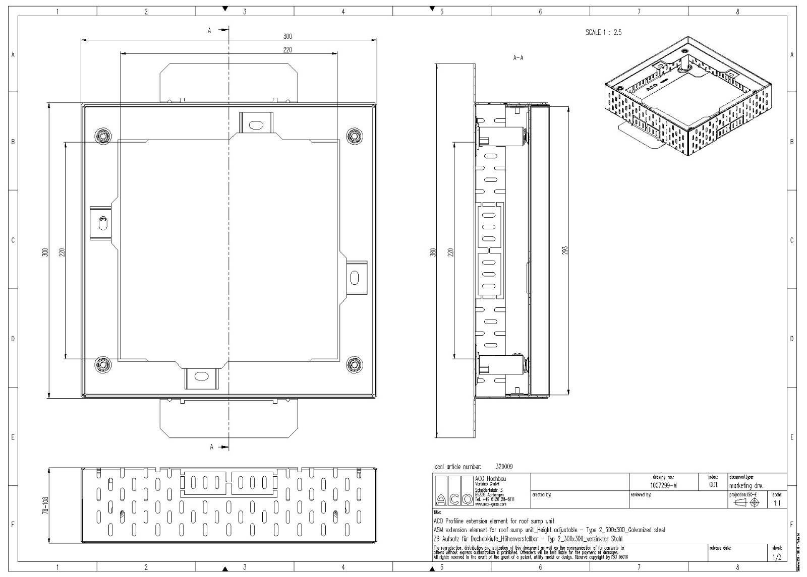 ACO Profiline Aufsatz für Dachabläufe höhenverstellbar Stahl verzinkt für Fassadenentwässerung