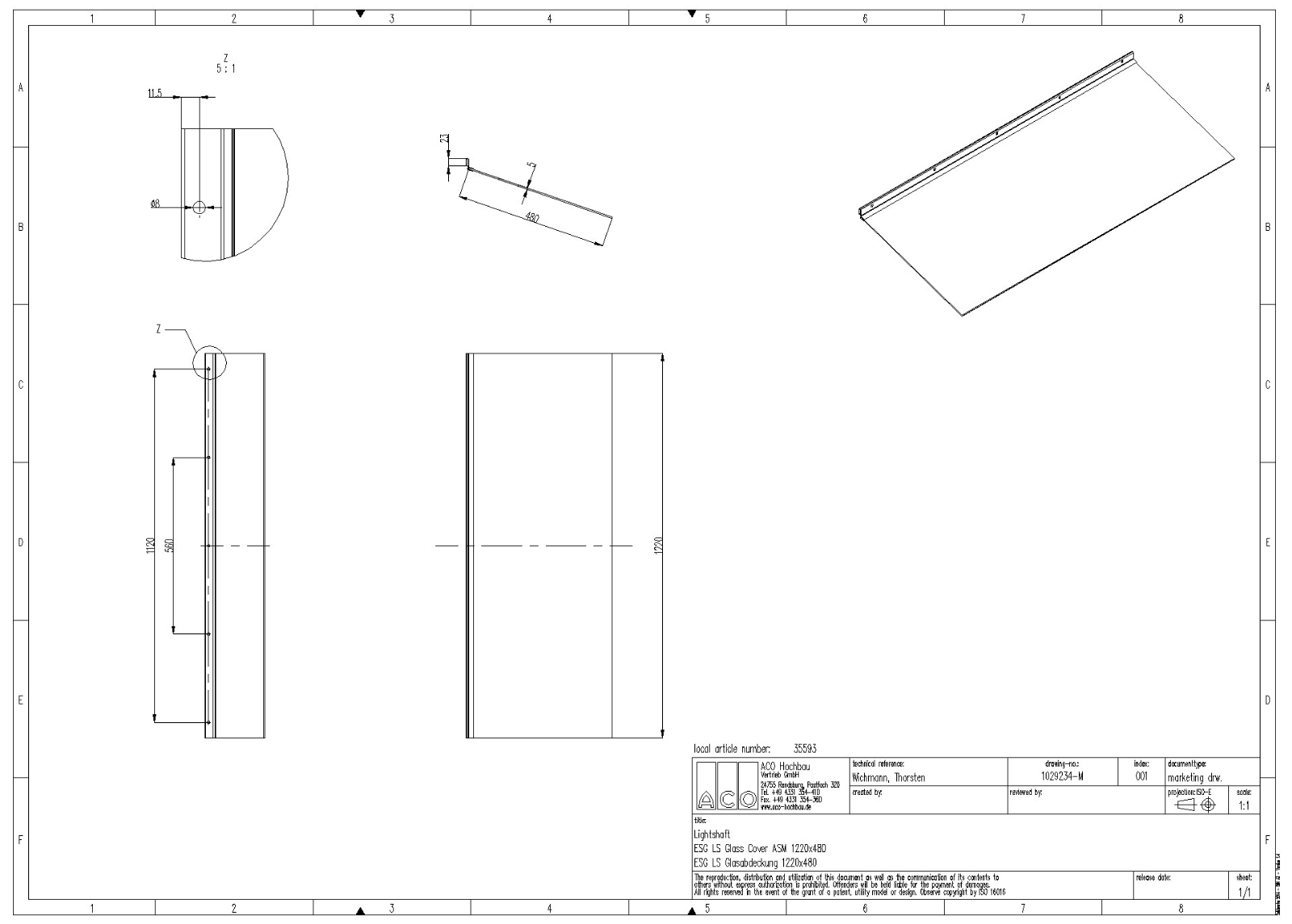 m.Scharnier, f.Lichtsch. 1000 x 400mm