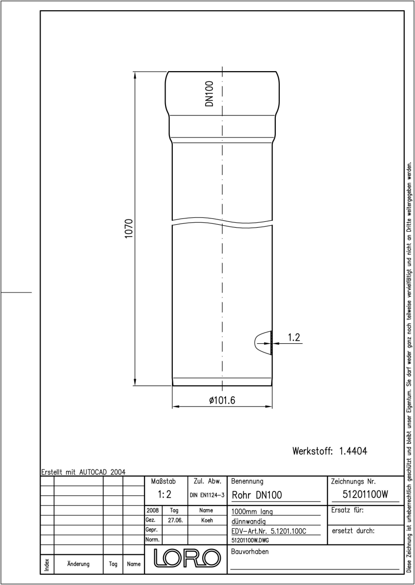 DN 100, 1m, Steckm., V4A
