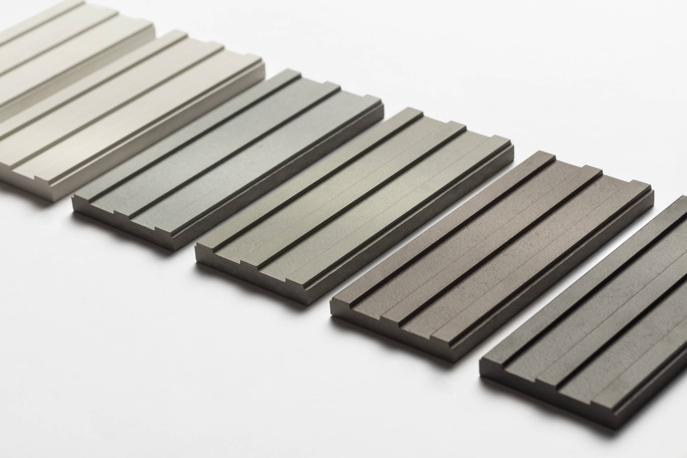 Das Farbspektrum von Gravial umfasst 6 Farben in Tönen von Weiss bis Schwarz