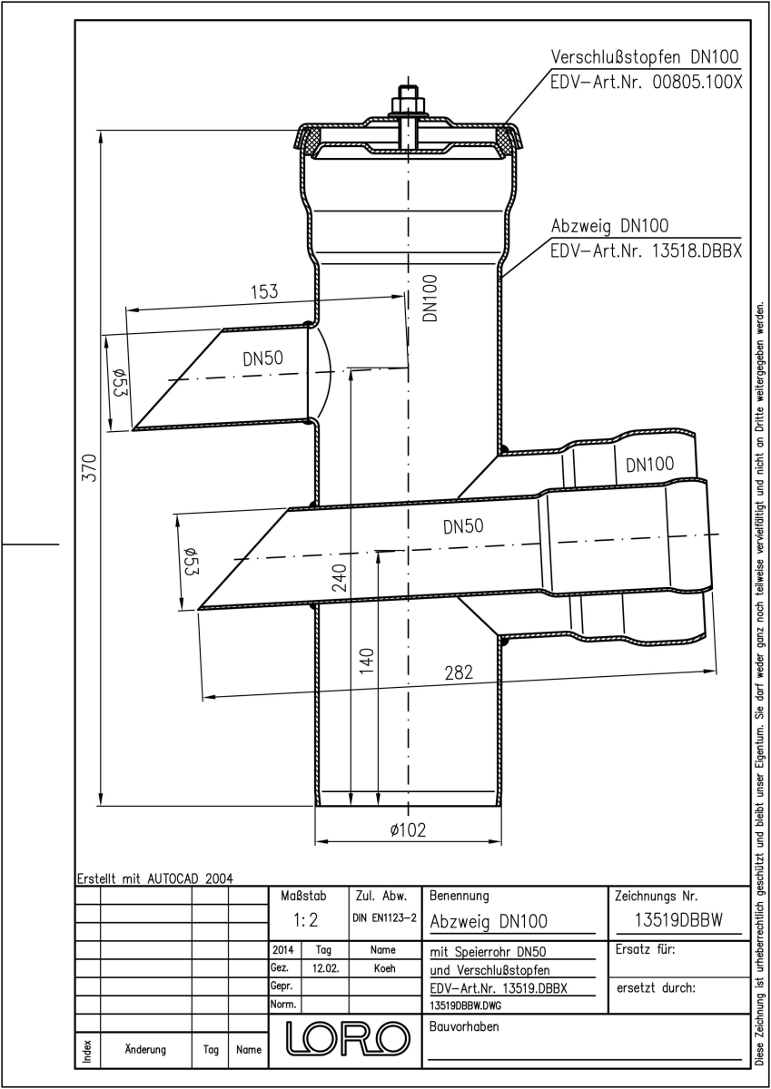 DN 100/50/50, Speierr., Stopfen, fvz