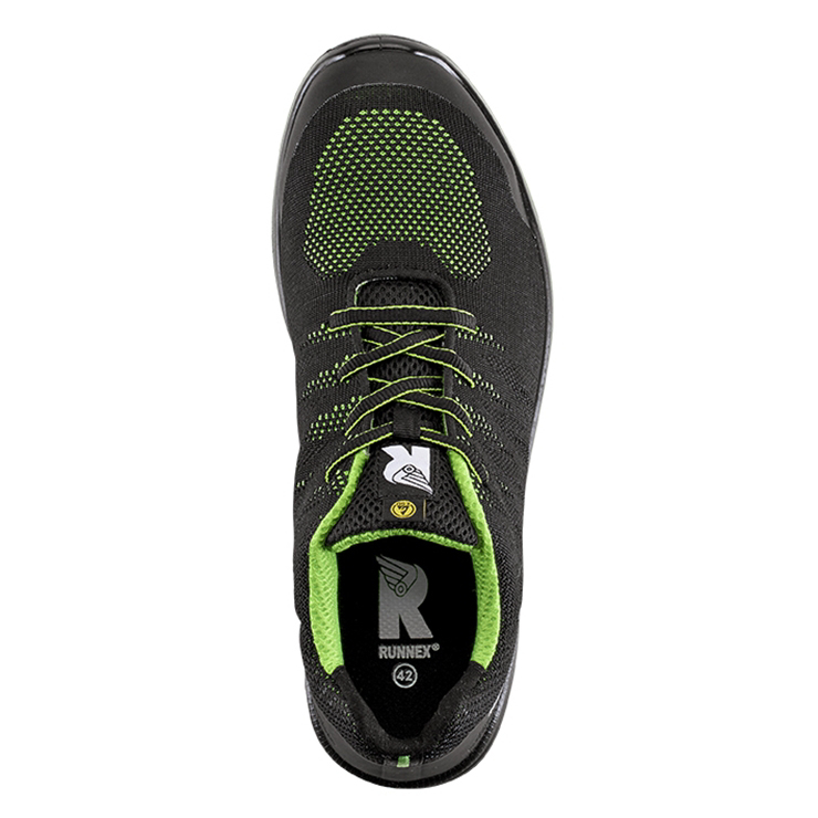 Obermaterial: Knit-Technologie, praktisch nahtlos verarbeitetes Strickmaterial aus Polyestergewebe, TPU-Kappen- und Fersenschutz Futter: RUNNEX® AIRSTREAM-Funktionsfutter Fersenfutter: RUNNEX® SOFTtouch Sohle: farbige PU-Laufsohle mit schwarzer PU-Zwischensohle Dämpfung: RUNNEX® SOFT PU-Zwischensohle Zehenschutzkappe: RUNNEX® Steel-Protection Durchtritthemmung: metallfrei Fußbett: ganzflächige Einlegesohle