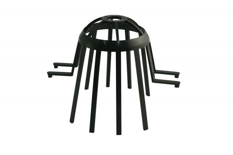 der halbrunden Dachrinne RG 100-150 (EAN 071510) eingesetzt und verhindert so ein Verstopfen des Fallrohres.