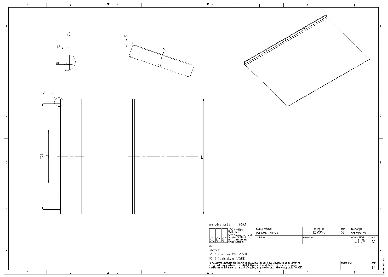 m.Scharnier, f.Lichtsch. 1000 x 600mm