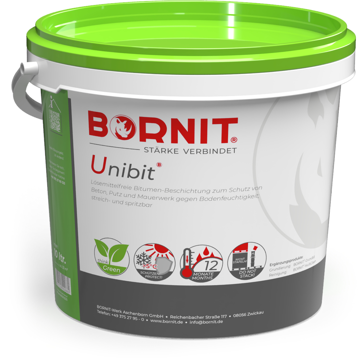 Bitumenemulsion, latexvergütet, lösemittelfrei, zum Schutz erdberührter Flächen gegen Bodenfeuchtigkeit, einsetzbar auf Beton, Putz und Mauerwerk, die umweltschonende Alternative, wasserverdünnbar, geprüft nach AIB DS 835 und DIN 18531-2. Grundierung stark saugender Untergründe mit BORNIT®-Grundbit.