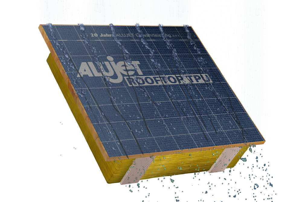 Die ALUJET Rooftop TPU ist eine diffusionsoffene Unterdeck- und Unterspannbahn aus einem reinen Polyestrvlies mit TPU-Beschichtung.