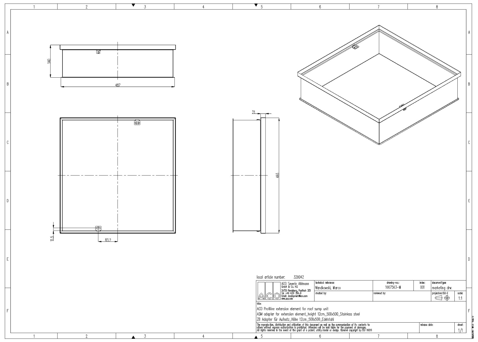ACO Profiline Aufstockelement für Dachablauf Aufsätze Edelstahl für Fassadenentwässerung