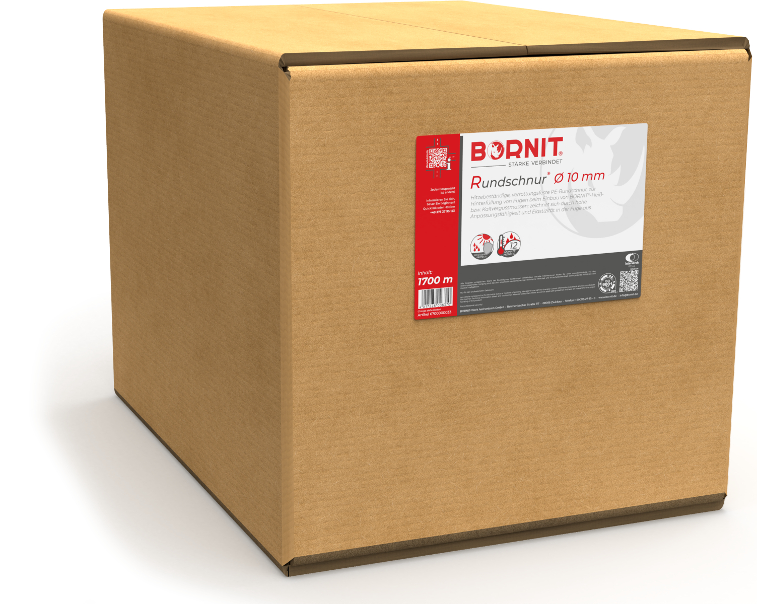 hitzebeständige, verrottungsfeste PE-Rundschnur, zur Hinterfüllung von Fugen beim Einbau von BORNIT®-Heiß- bzw. Kaltvergussmassen, nehmen kein Wasser auf, hohe Anpassungsfähigkeit und Elastizität in der Fuge.