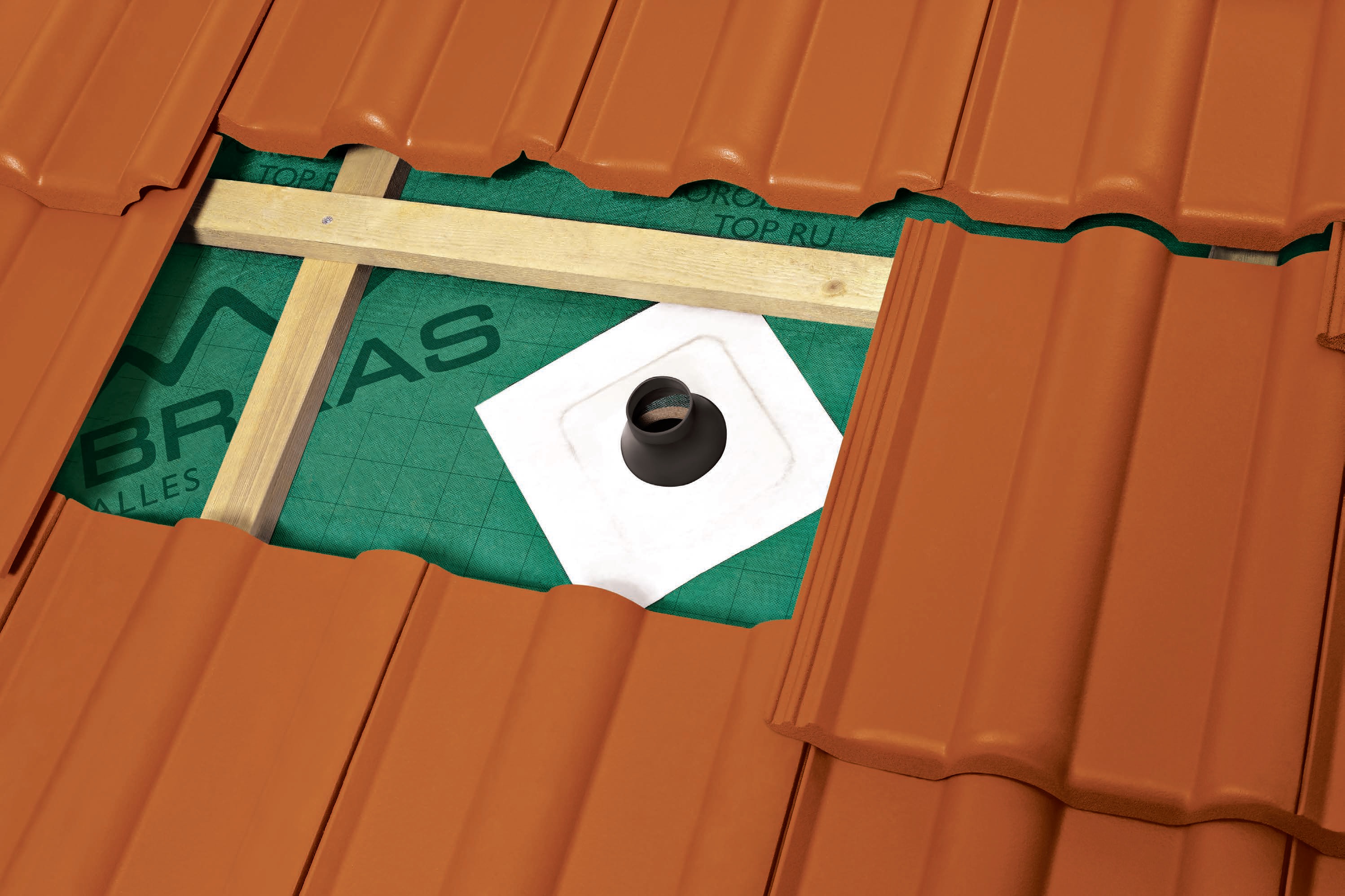 wie z. B. Rohrdurchführungen bei Solarkollektoren, Kabeldurchführungen bei Photovoltaikanlagen, Durchführung von Antennenmasten.