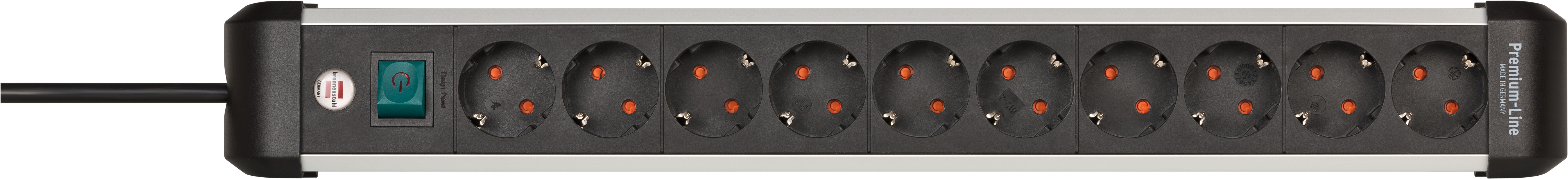 Premium-Alu-Line Steckdosenleiste 10-fach / Steckerleiste aus hochwertigem Aluminium (Mehrfachsteckdose mit Schalter und 3m Kabel, Made in Germany)