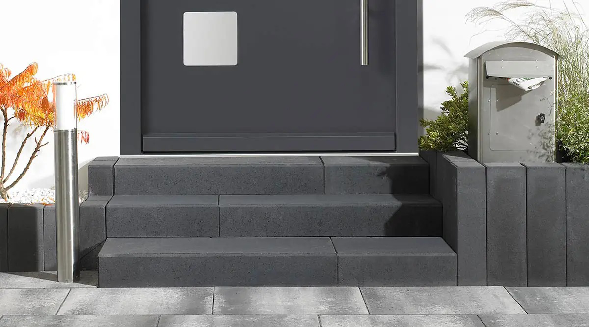 - Blockstufe mit schlichter, seitlich leicht gefaster Stoßkante