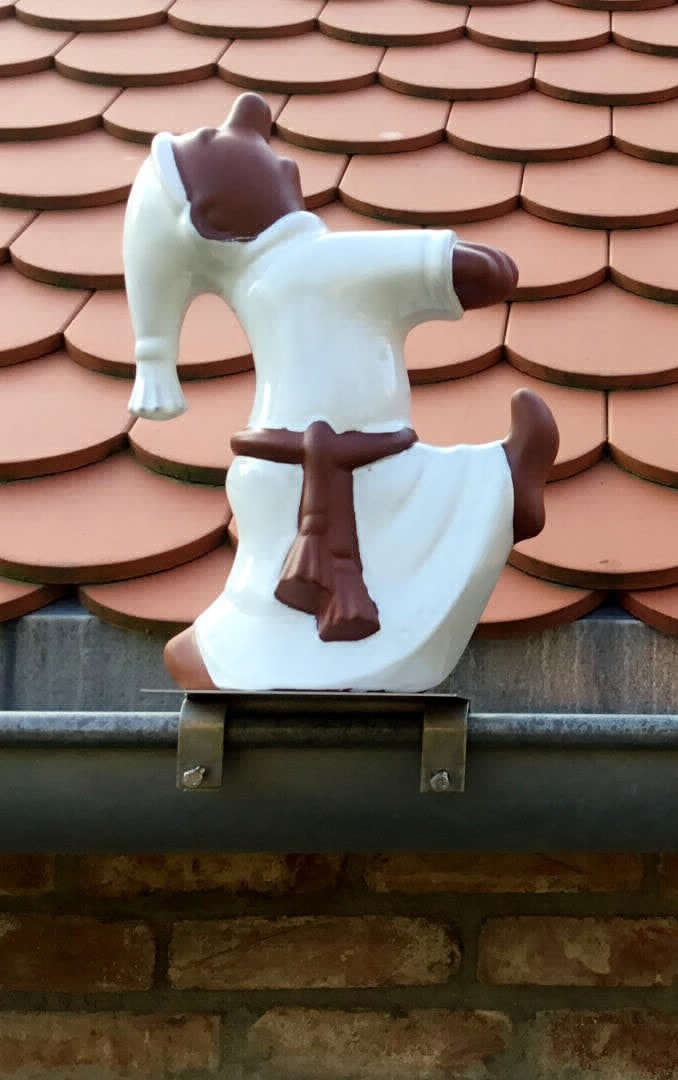 Es handelt sich um Grobkeramik, wobei die Modelle auf einen Firstziegel montiert wird der i.d.R. zwischen 5-20m Enfernung vom Erdboden betrachtet werden und somit für das Auge auch nicht erkennbar sind.