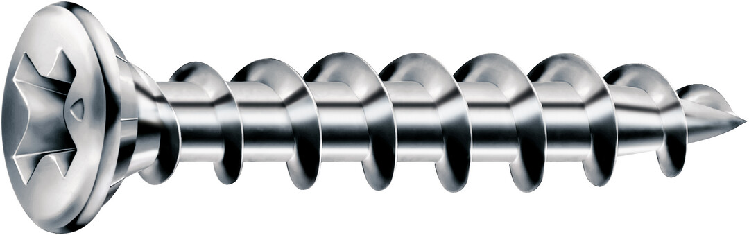 Durch die spezielle tiefe Gewindegeometrie mit großer Steigung gewährleistet sie einen soliden Halt im Kunststoff, und Sie können sie ohne Vorbohren der Schraublöcher verarbeiten.