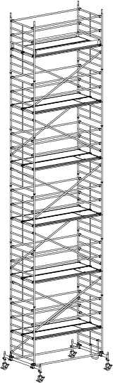 HYMER Fahrgerüst mit Fahrtraverse, Bühnenlänge 2,95 m, Rahmenteilbreite 1,50 m, Reichhöhe 13,60 m