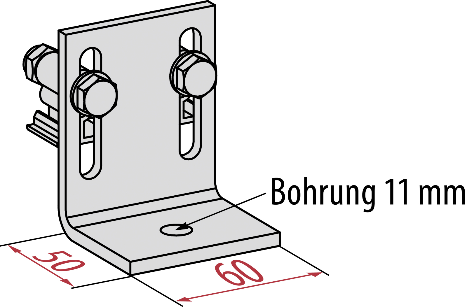HYMER Bodenwinkel verstellbar, Alu, Verstellbereich 40 mm, inkl. Schraube und Mutter zur Leitermontage
