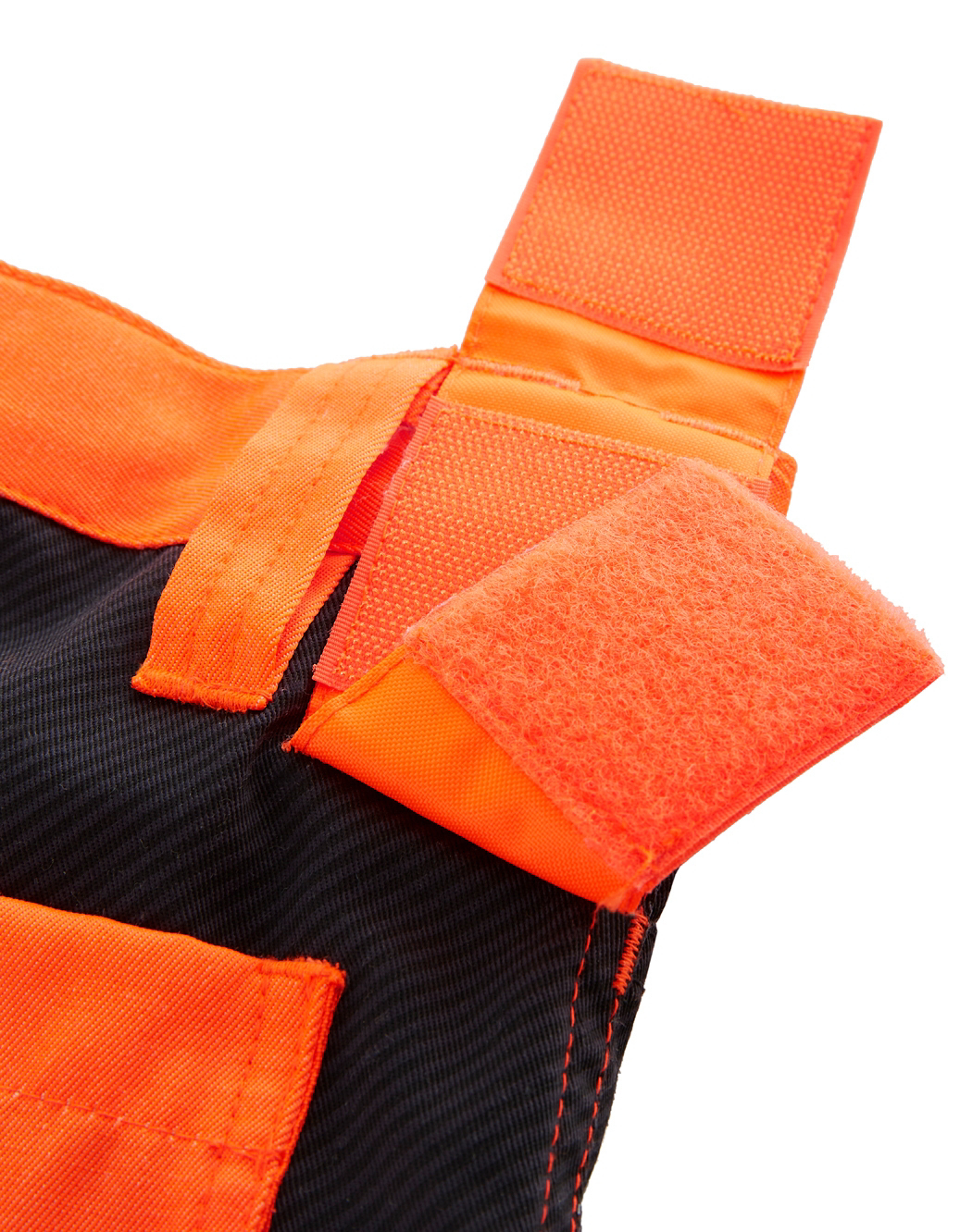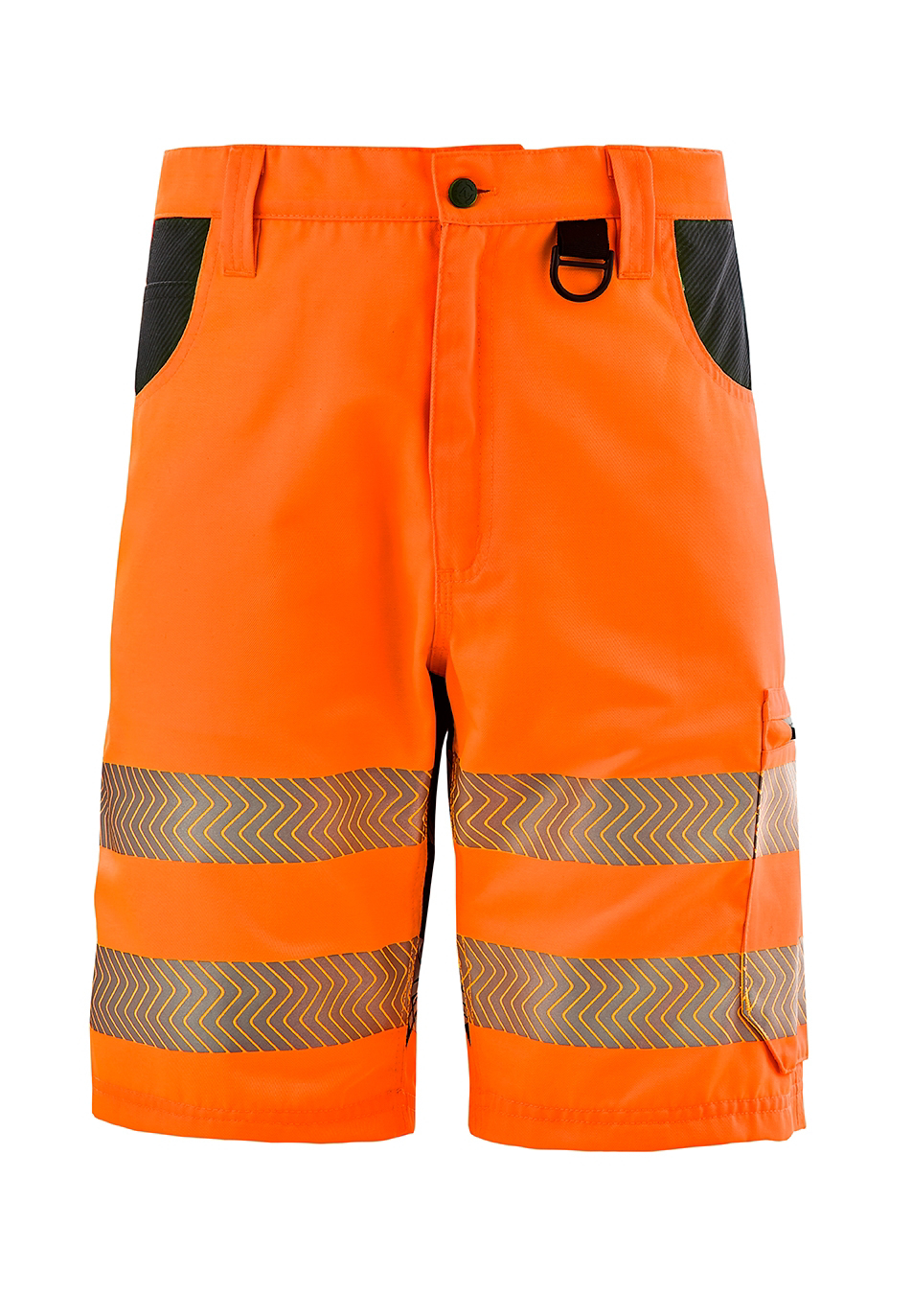 Zertifiziert nach EN ISO 13688:2013 (allgemeine Anforderungen) und EN ISO 20471:2013+A1:2016 (Warnschutz) Klasse 1. Hervorragende Passform dank ergonomischer, körpernaher Schnittform in Verbindung mit Stretcheinsätzen. Das belastbare Twill-Gewebe ist gleichzeitig angenehm weich und geschmeidig. Segmentierte, auflaminierte, 5 cm breite Reflexstreifen, umlaufend um die Hosenbeine der Shorts. Dunkel abgesetzte Besätze am Hosenboden verhindern ein leichtes Anschmutzen. Taschenböden aus abriebfestem Oxford-Gewebe. Eine Cargotasche auf dem linken Hosenbein. 2 Eingriffstaschen vorn, 2 Gesäßtaschen, eine mit und eine ohne Taschenklappe. Zollstocktasche und Hammerschlaufe auf der rechten, hinteren Beinseite. Eine Klettlasche zur Befestigung diverser Tools und D-Ring am Taillenbund sowie eine verstellbare Bundweite.