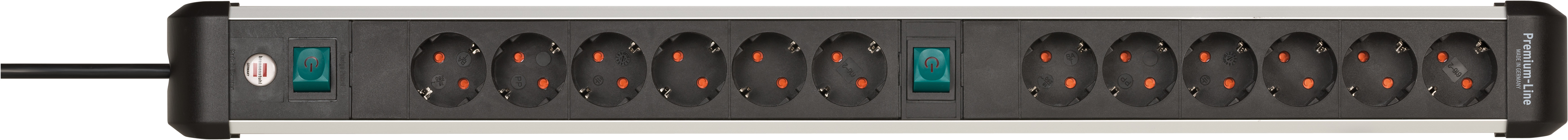 Premium-Alu-Line Steckdosenleiste 12-fach / Steckerleiste aus hochwertigem Aluminium (Mehrfachsteckdose mit 2 Schaltern und 3m Kabel, Made in Germany)