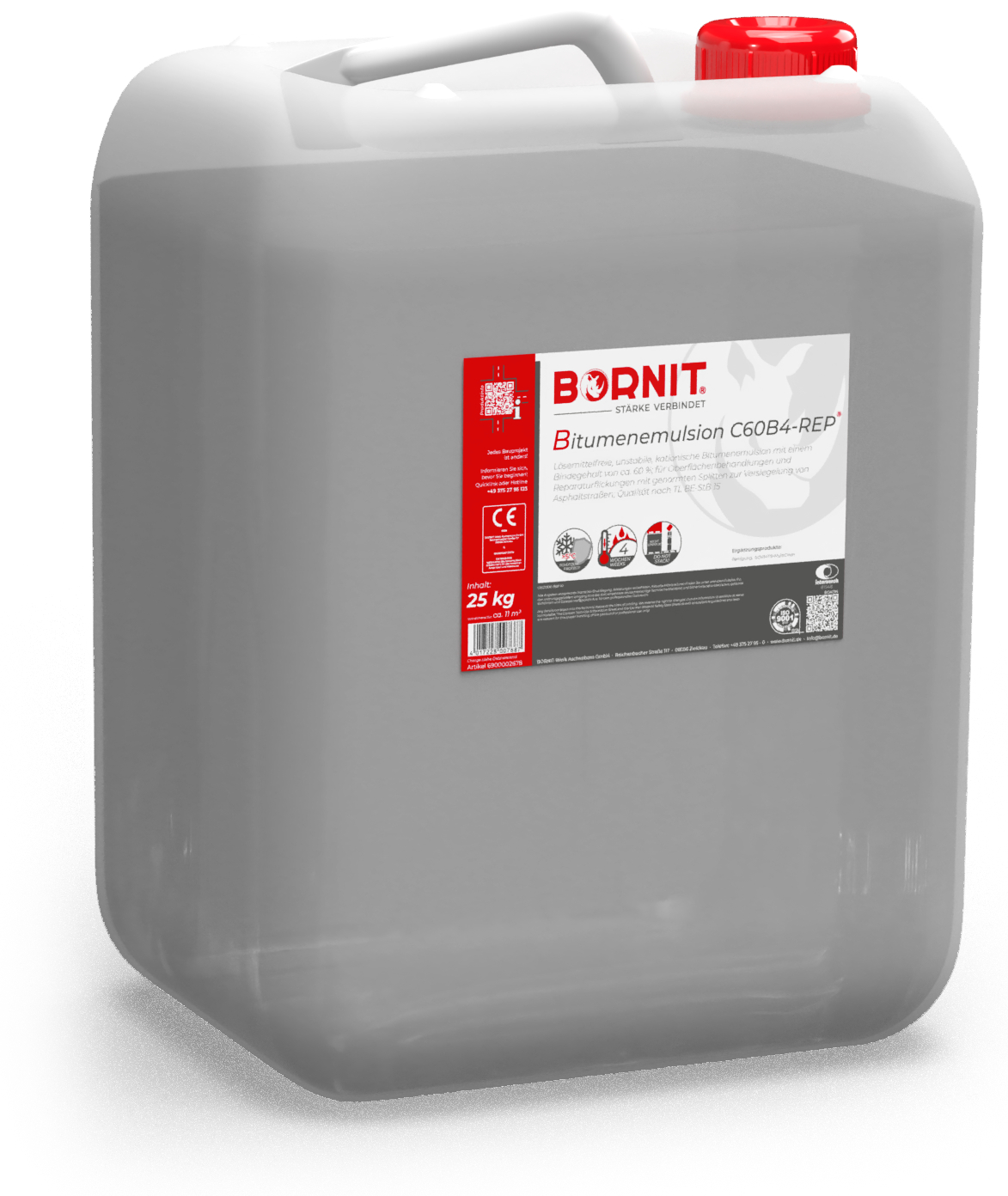 Unstabile, kationische Bitumenemulsion mit einem Bindemittelgehalt von ca. 60%. Qualität nach TL BE-StB 15 Rubrik C60B4-REP.