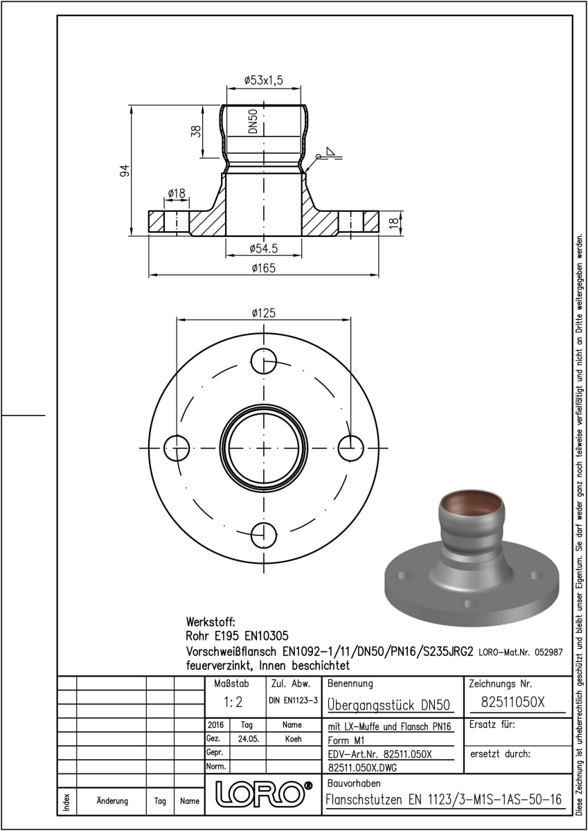 LORO-X Übergangsstück mit Flansch und Steckmuffenverbindung