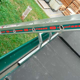 Die Rinne wird durch das Anstellen der Leiter am Wulst nicht beschädigt.