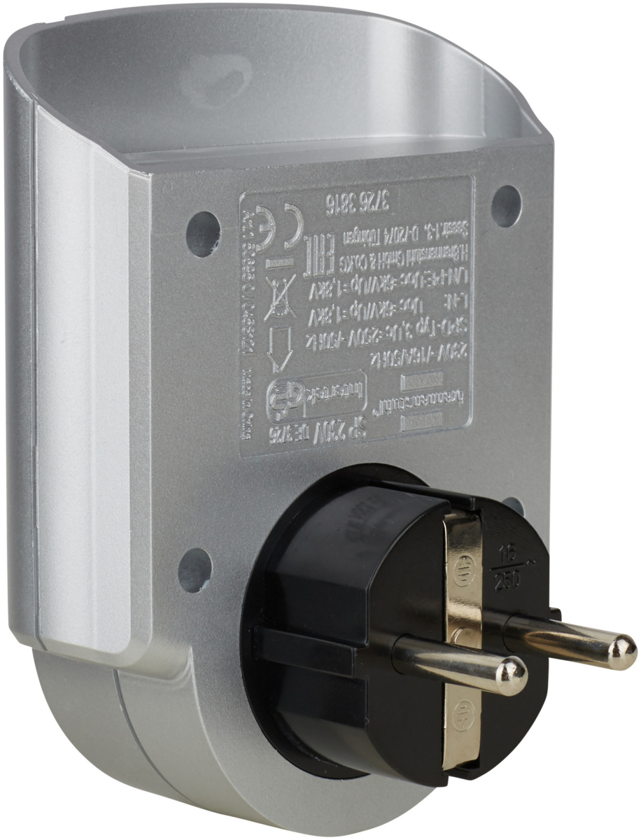 • Adapter für die Steckdose mit 13.500 A Überspannungsschutz in der Farbe Silber/schwarz