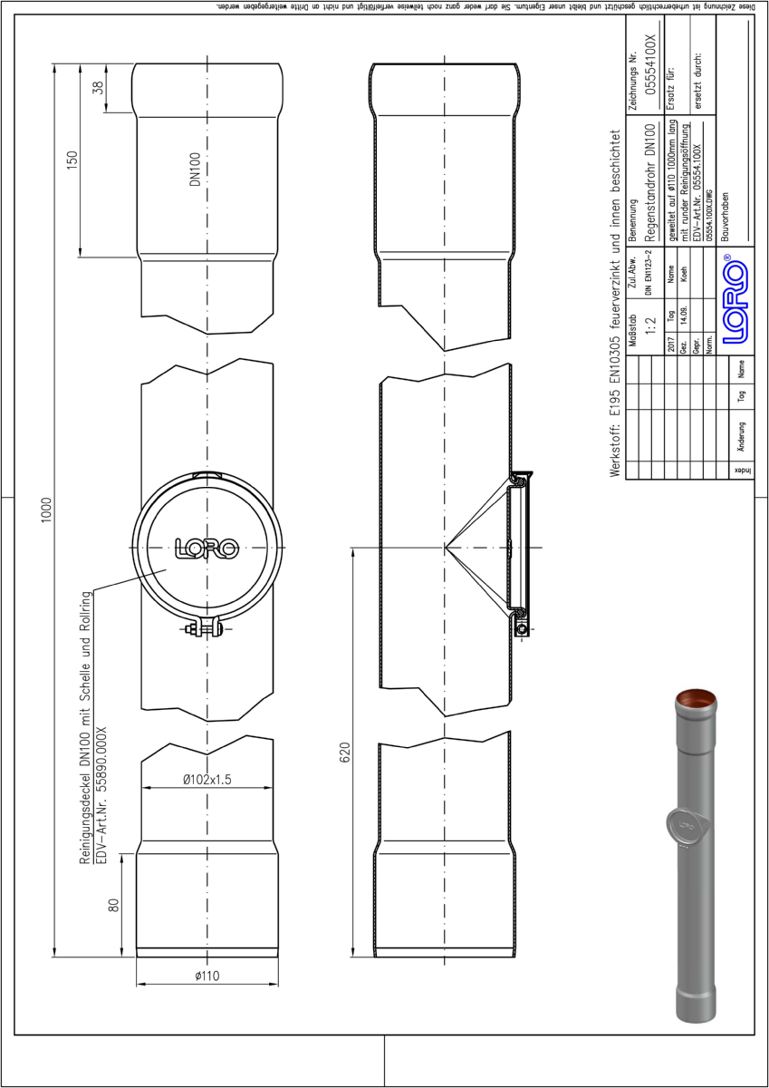 DN 100, 1m, Öffn., Steckm., fvz