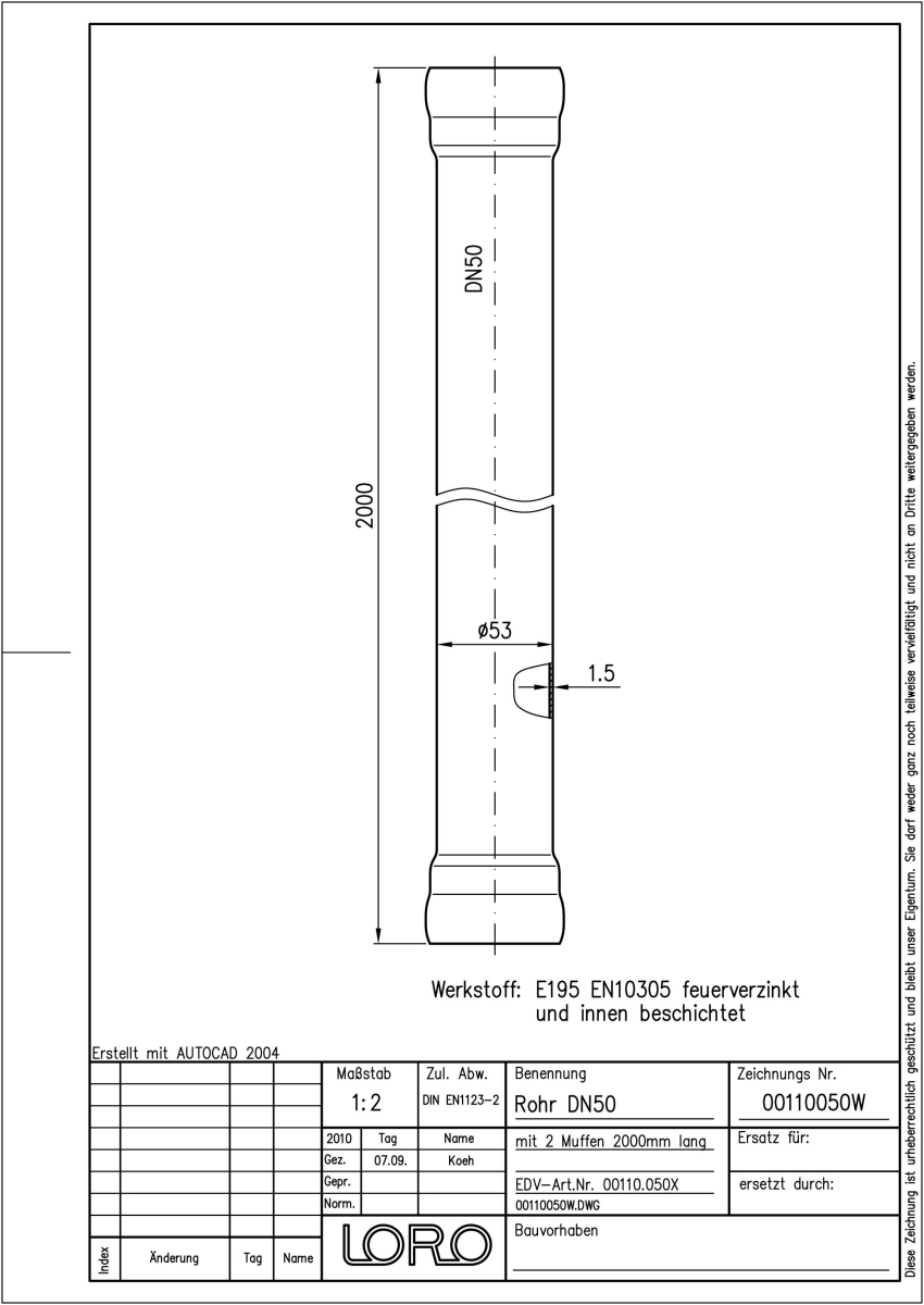 HAN: 00110.050XGTIN: 4038088005392Art.Nr.: LORO-000015