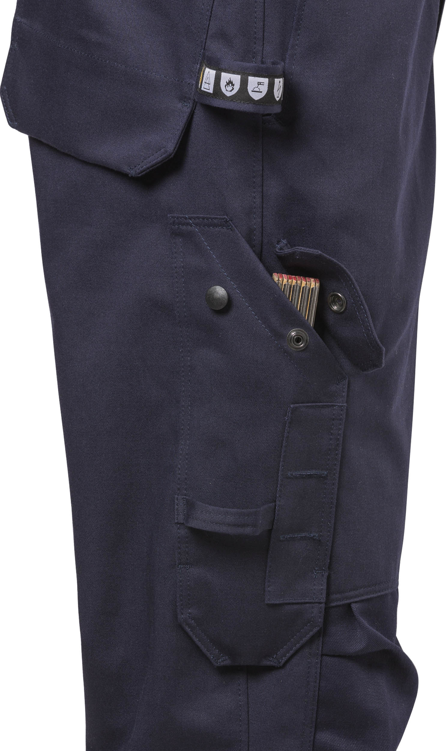 • 2 CORDURA®-verstärkte Gesäßtaschen mit Patte und verdecktem Druckknopfverschluss