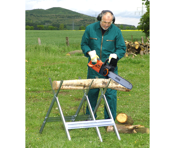 Mit dem stabilen Sägebock wird das Sägen von Brennholz oder das Kappen von Holzstämmen einfach komfortabler.