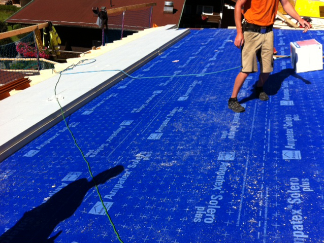 Dreilagige Dampfbremse, Luftdichtung und bewitterbare Dampfbremse. Stoffig weich, rutschfest und freibewitterbar. Ideal für Aufsparrendämmung.