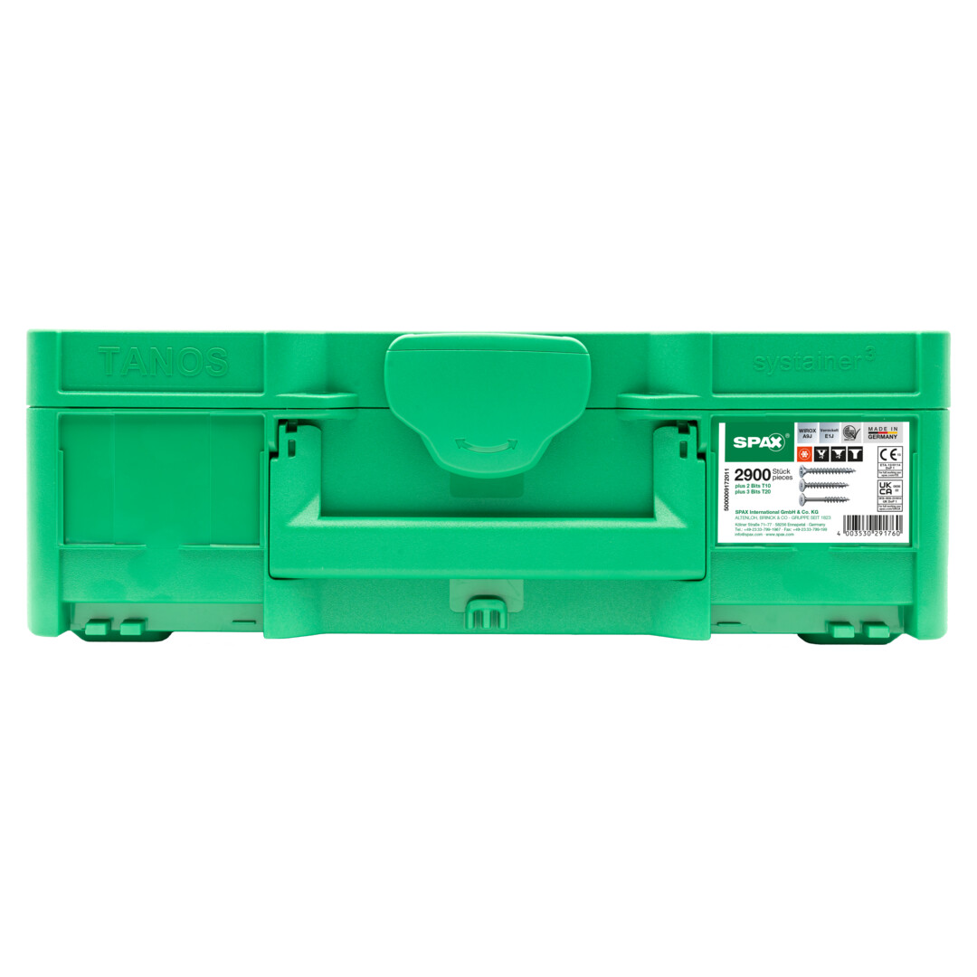 Der systainer³ T-Loc enthält gut sortiert und übersichtlich angeordnet das, was beim Möbelbau gebraucht wird: SPAX Rückwandschrauben(), SPAX Korpusverbinderschrauben() und SPAX Universalschrauben(*) in verschiedenen Größen sowie die dazugehörigen Bits.