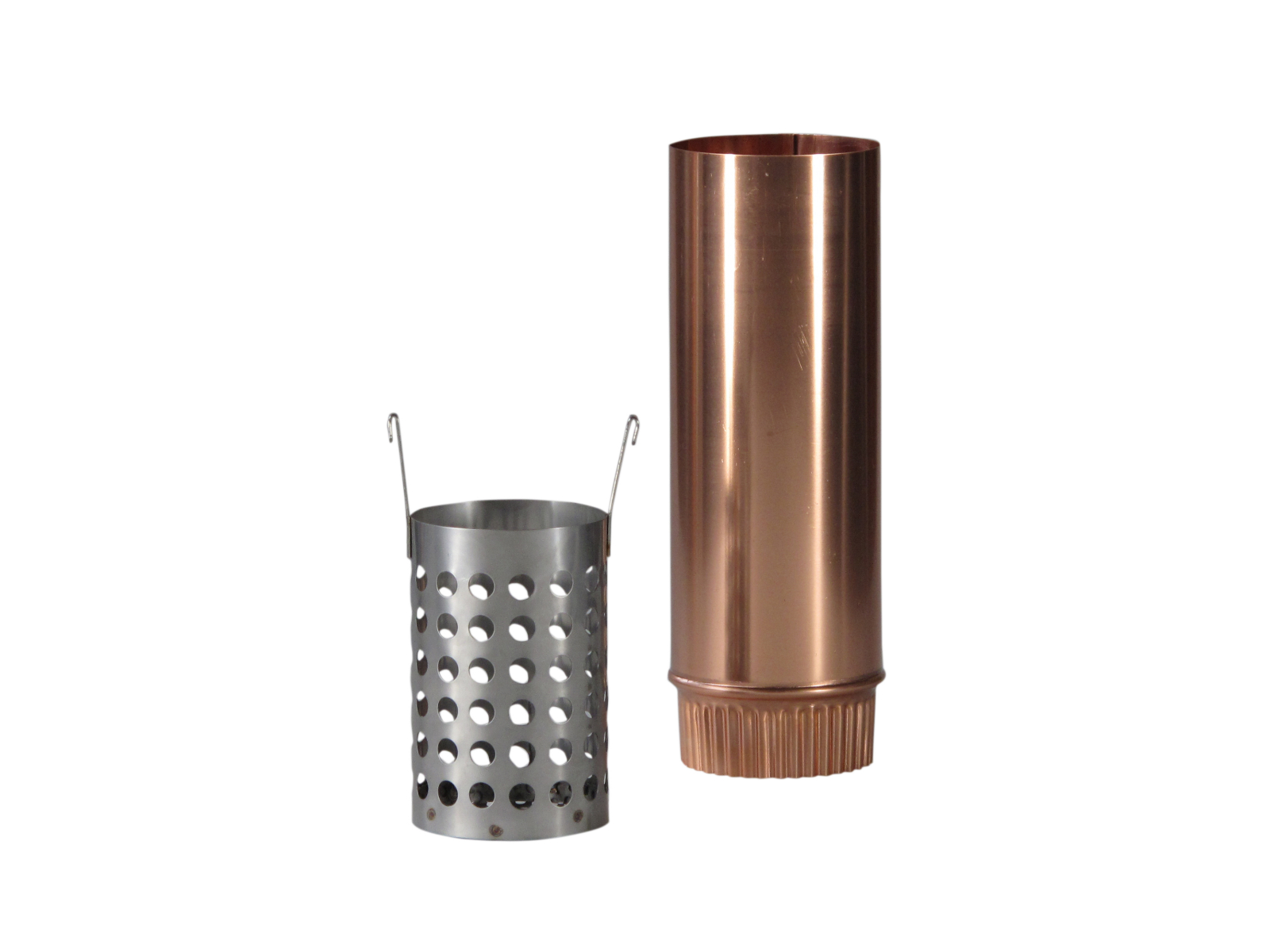 Der Laubfang Ratio besteht aus einem Laubkorb der in das Rohr gehangen wird und einem Schiebestück, das den Zugang zum Korb ermöglicht.