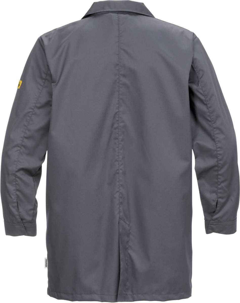 Verdeckte Druckknopfleiste / Brusttasche mit Stifttasche, Patte mit Druckknopf / 2 Vordertaschen mit Patten und Druckknöpfen / Rückseitiger Bewegungsschlitz / Ärmel mit Druckknopf verstellbar / Geprüft und zugelassen gemäß IEC 61340 / OEKO-TEX® zertifiziert.
