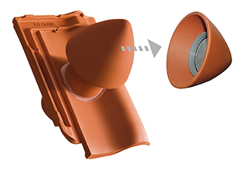 Auf diese Weise kann das Dunstrohrelement je nach Einsatzgebiet (Toilettenentlüftung oder Ventilatorenlüftung) geöffnet oder geschlossen werden.