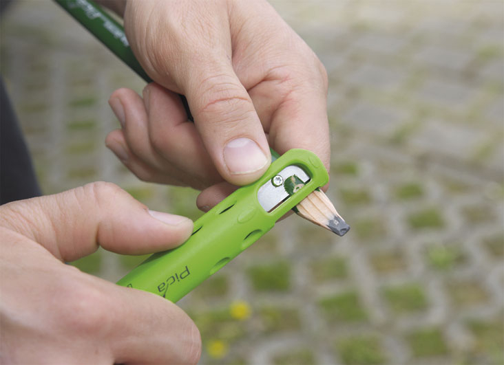 • Seine geniale Klemmfunktion fixiert den Holzstift stets griffbereit. Man konzentriert sich auf seine Arbeit und findet den Stift blind