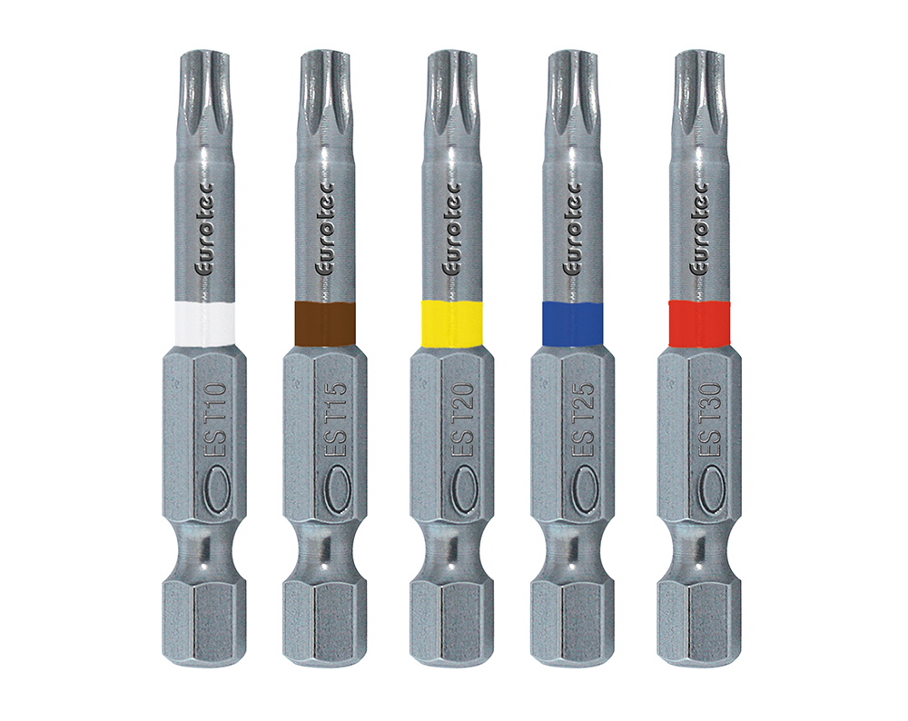 Mit dem Farbleitsystem von Eurotec Durch die Edelstahl Lang-Bits von Eurotec entsteht kein Abrieb von Fremdstahl beim Einschrauben von Edelstahlschrauben. Somit wird die Fremdrostgefahr effektiv verhindert.