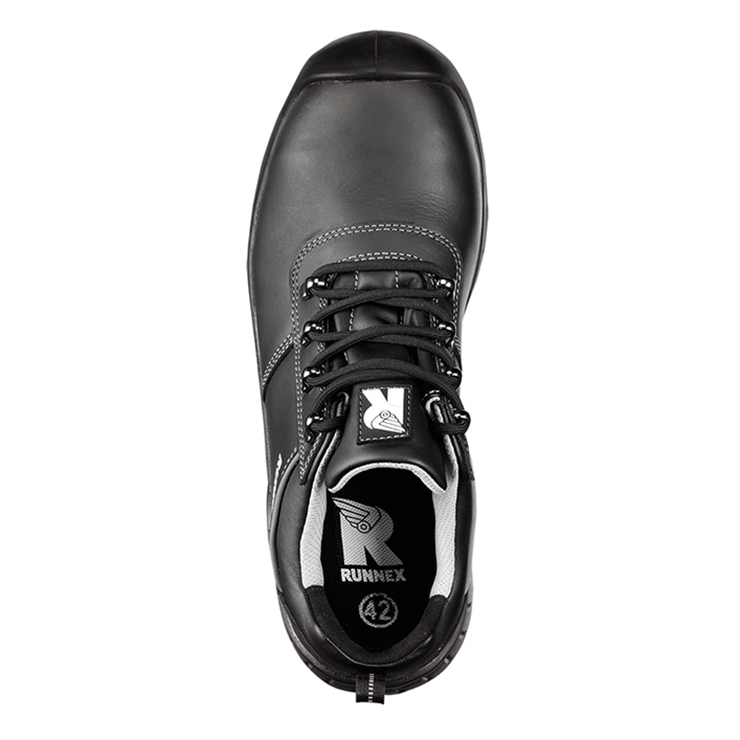 Obermaterial: hydrophobiertes Glattleder, reflektierende Biese Futter: RUNNEX® AIRSTREAM-Funktionsfutter Fersenfutter: RUNNEX® SOFTtouch Sohle: 2-Dichten PU/PU- Sohle mit PU-Überkappe Dämpfung: RUNNEX® EVA-Dämpfungssystem Zehenschutzkappe: RUNNEX® Alu-Protection Durchtritthemmung: metallfrei Fußbett: ganzflächige Einlegesohle aus Poliyou® Passende Fußbetten: 5405 RUNNEX® Ersatzfußbetten aus Poliyou®