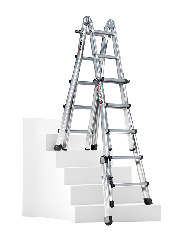 - Als eingeschobene Stehleiter beim Transport sehr kompakt