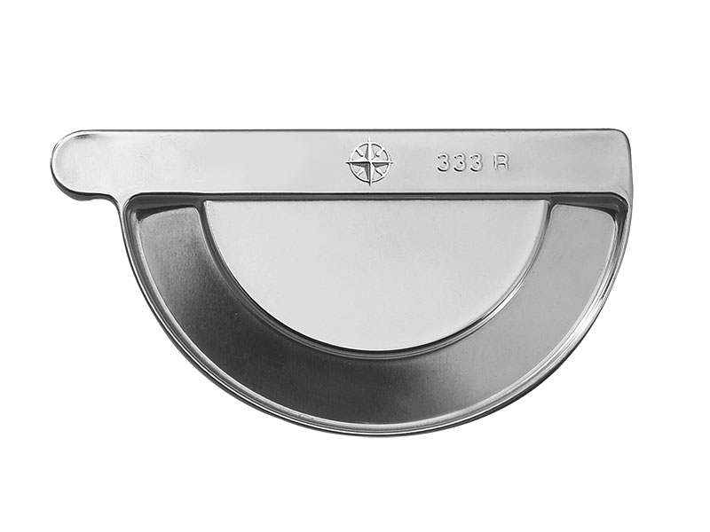 Die rechtsseitige, halbrunde Ausführung des Lötbodens von Zambelli gewährleistet ein dichtes Verschließen des halbrunden Dachrinnenendes und ist auch als linksseitige Ausführung erhältlich.