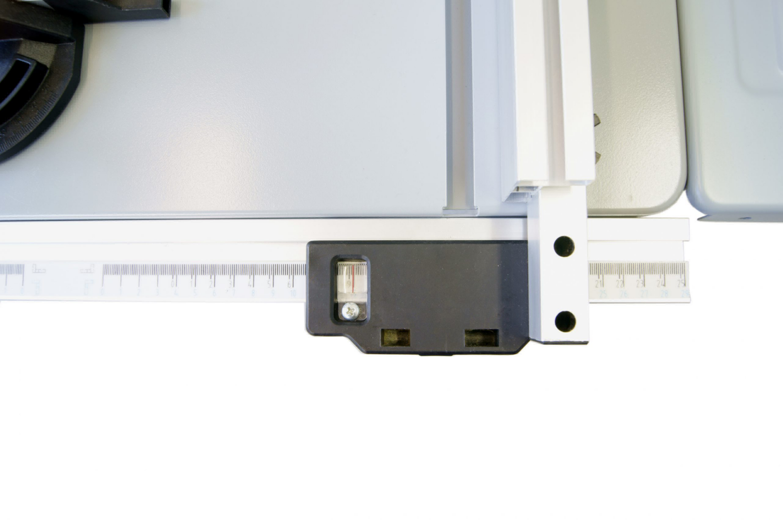 • Der Längsanschlag mit Lupe ist schnell arretierbar und wird auf einer Profilleiste mit mm-Skala geführt.