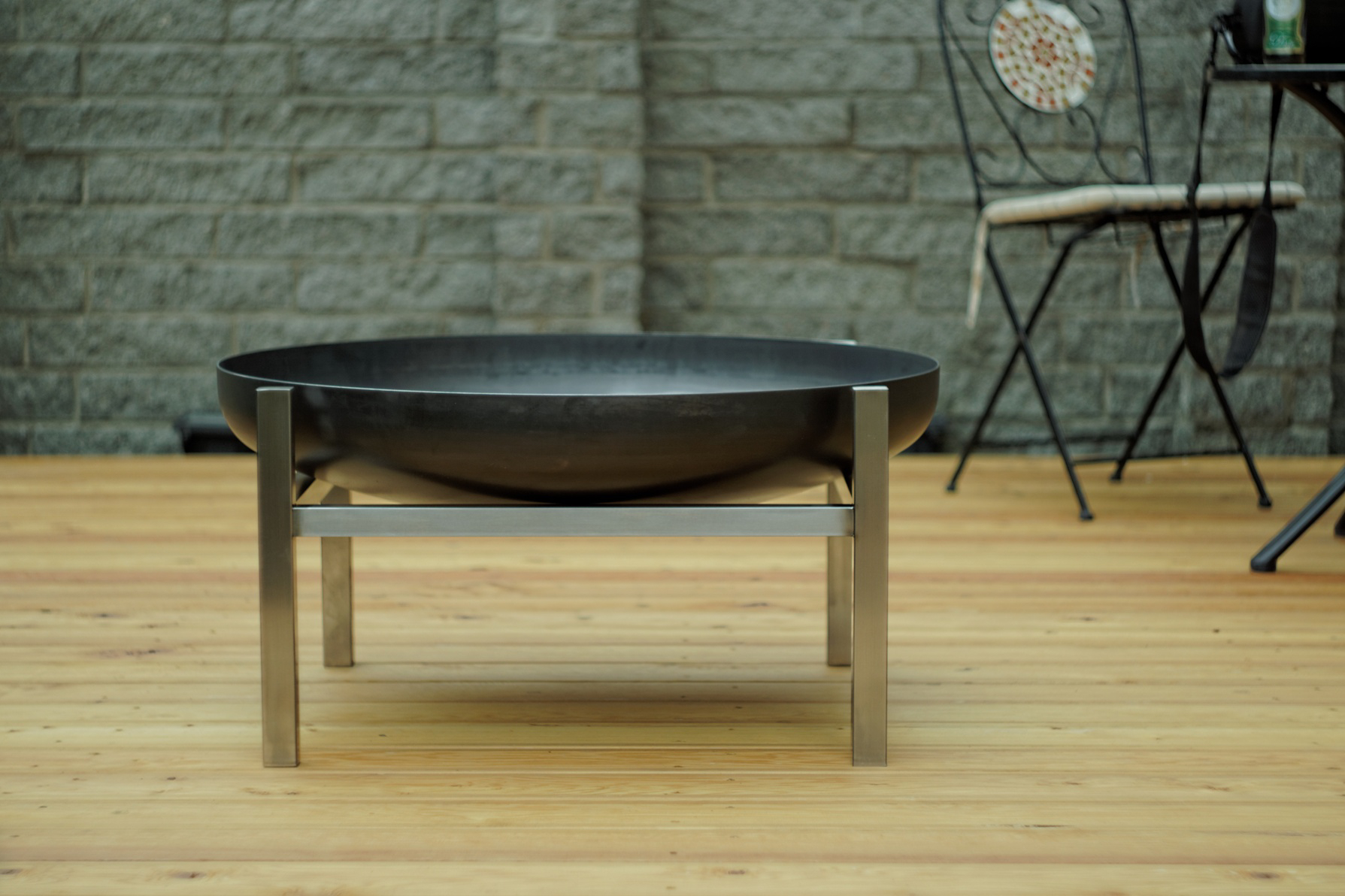 Design Feuerschale CUBE Größe Super XXL - Edelstahl-Basis mit Feuerschale aus massivem Rohstahl 2,5 mm