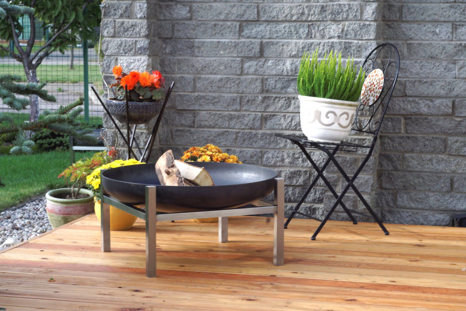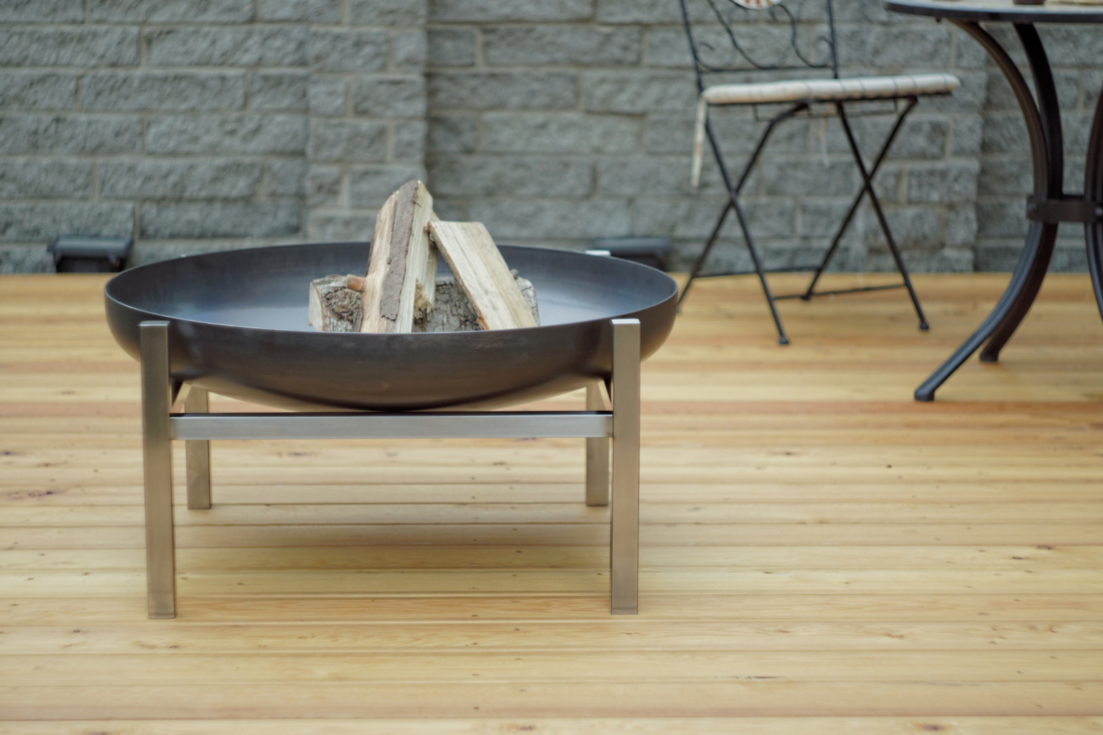 Überaus attraktive Feuerschale: die Kombination soliden, rostenden Rohstahls (Materialstärke 2,5 mm) mit einer zeitlosen Edelstahl-Basis bietet auch ohne Befeuerung einen tollen Blickfang. Diese solide Feuerschale wird in einer europäischen Designer-Werkstatt weitgehend in Handarbeit hergestellt und entspricht höchsten Qualitätsansprüchen.