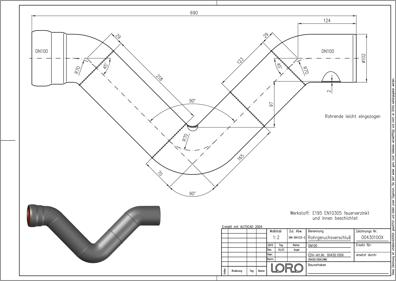 LORO-X Rohrgeruchverschluss ohne Reinigungsstopfen,aus Stahl, feuerverzinkt, nach DIN EN 1123 mit erhöhtem Qualitätsstandard gemäß RAL-Gütezeichen GZ-694, mit 2-Kammern-Steckmuffenverbindung, Baustoffklasse A1, formstabil, bruchfest, rückstausicher, langlebige Innenbeschichtung gemäß DIN EN ISO 2178 auf Basis einer 2K-Epoxid-Kombination, Farbton: Rotbraun, DN 100