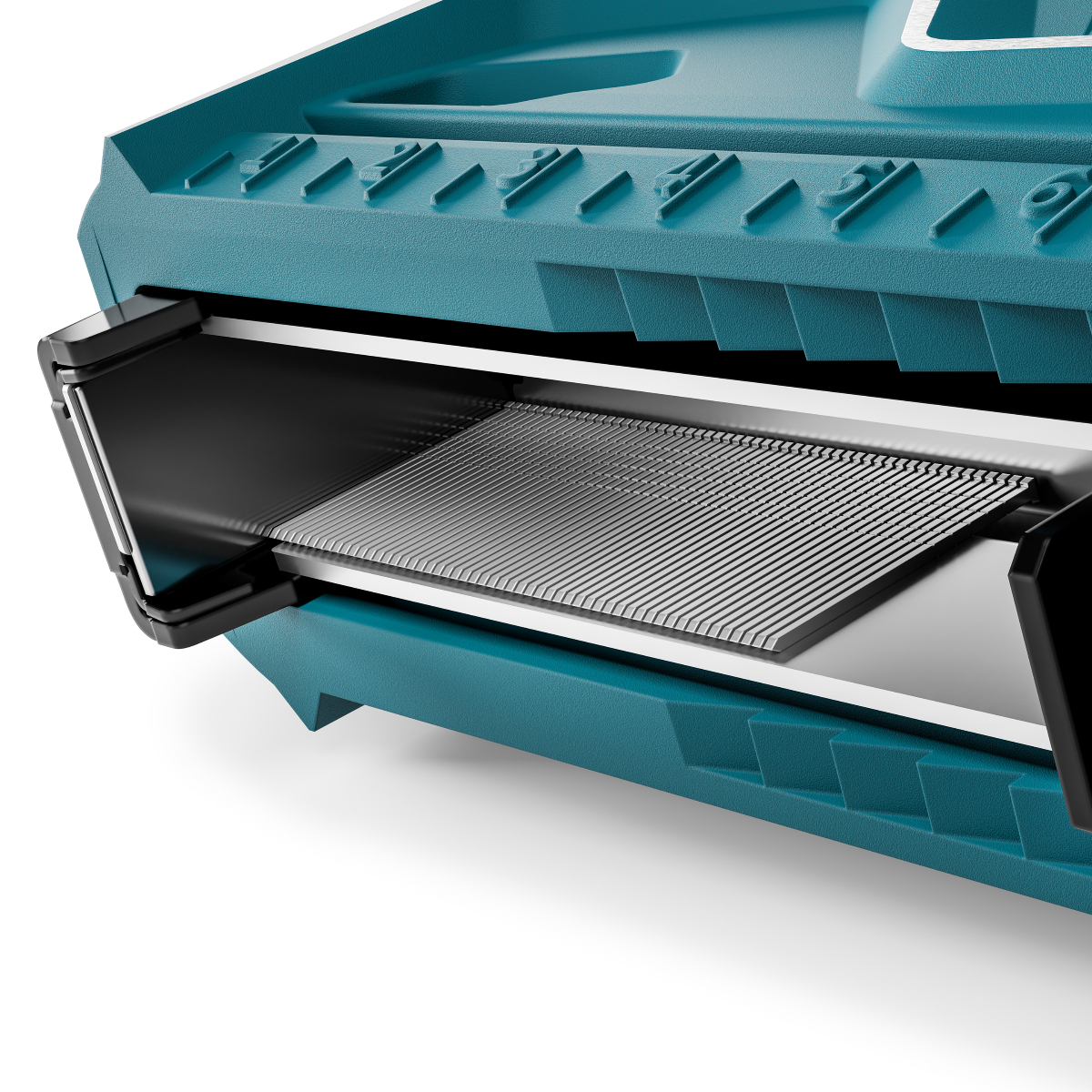 Verarbeitet Flachdrahtdrahtklammern Typ D & Typ G von 6 bis 14 mm und Nägel Typ E bis 16 mm. Lange Nase für präzises Arbeiten an schwer zugänglichen Stellen. Distanzanschlag zum Tackern einer Klammerreihe parallel auf einer Höhe. Unterlademechanik mit Sicherheitsentriegelung zum schnellen Nachladen. Schlagkrafteinstellung für richtige Schlagkraft für Weich- oder Hartholz. Gurthaken für Verstauen am Gürtel. Ergonomischer Softgrip-Hebel für komfortables Arbeiten. Griffverriegelung zum Verstauen bei Nichtgebrauch. Gut sichtbare Klammer Füllstandsanzeige.