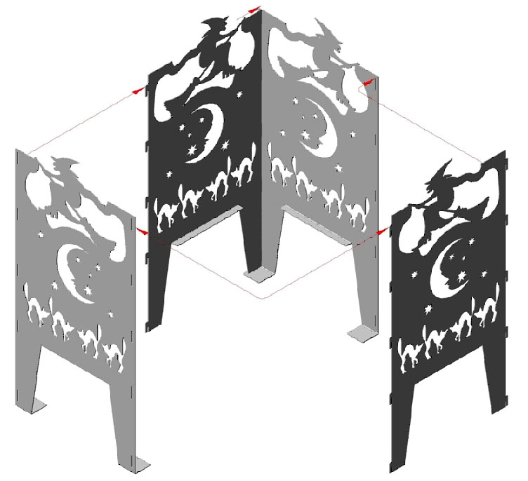 Feuerkorb Größe S Motiv Hexe aus Rohstahl - Stecksystem - mit Ascheblech und massiven integriertem Gitterrost