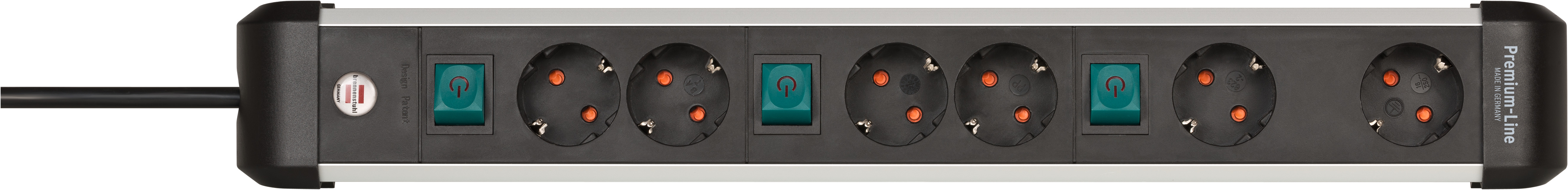 Premium-Alu-Line Steckdosenleiste 6-fach / Steckerleiste mit 3x 2-fach schaltbare Steckdosen aus hochwertigem Aluminium (Mehrfachsteckdosen mit 3m Kabel, Made in Germany)