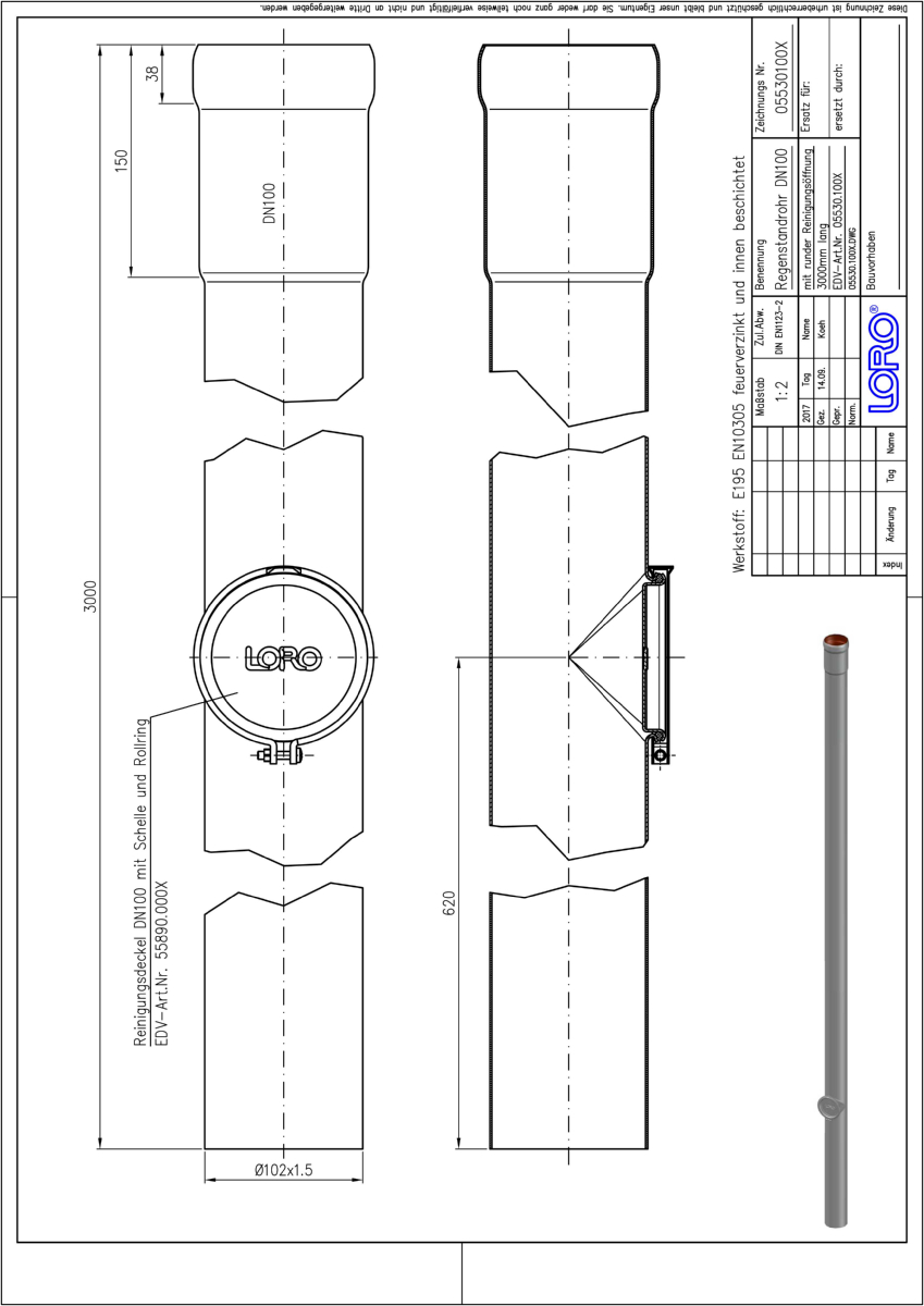 DN 100, 3m, Öffn., fvz