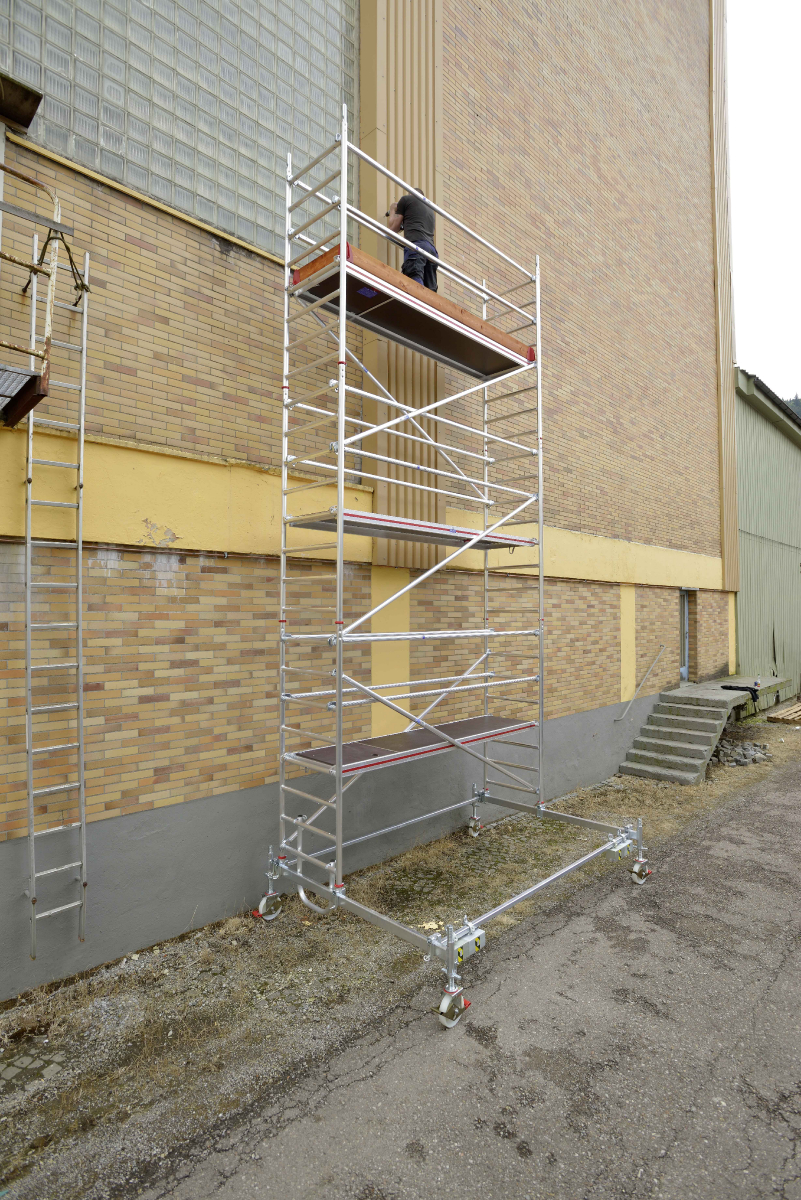 HYMER Fahrgerüst mit Fahrtraverse, Bühnenlänge 2,95 m, Rahmenteilbreite 0,80 m, Reichhöhe 12,60 m