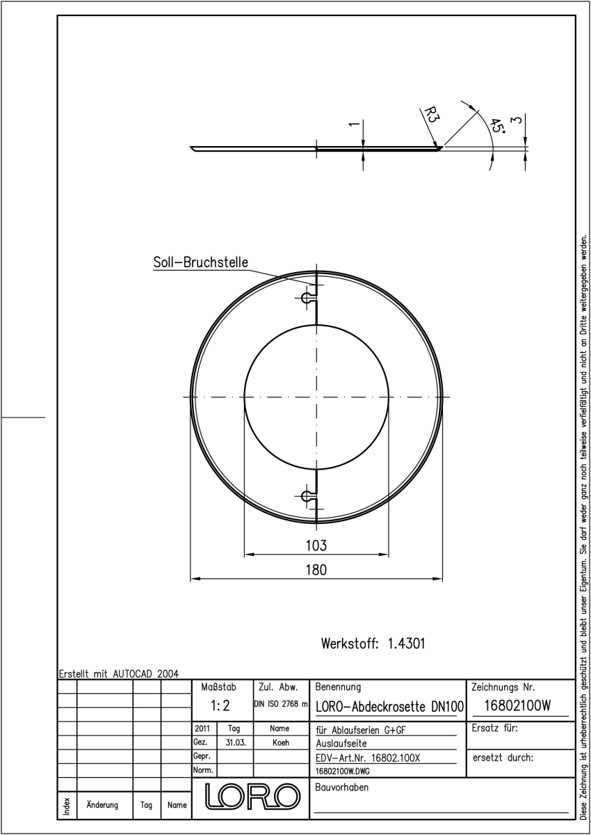 DN 100, Durchg.f.LORO-X Rohr, V2A