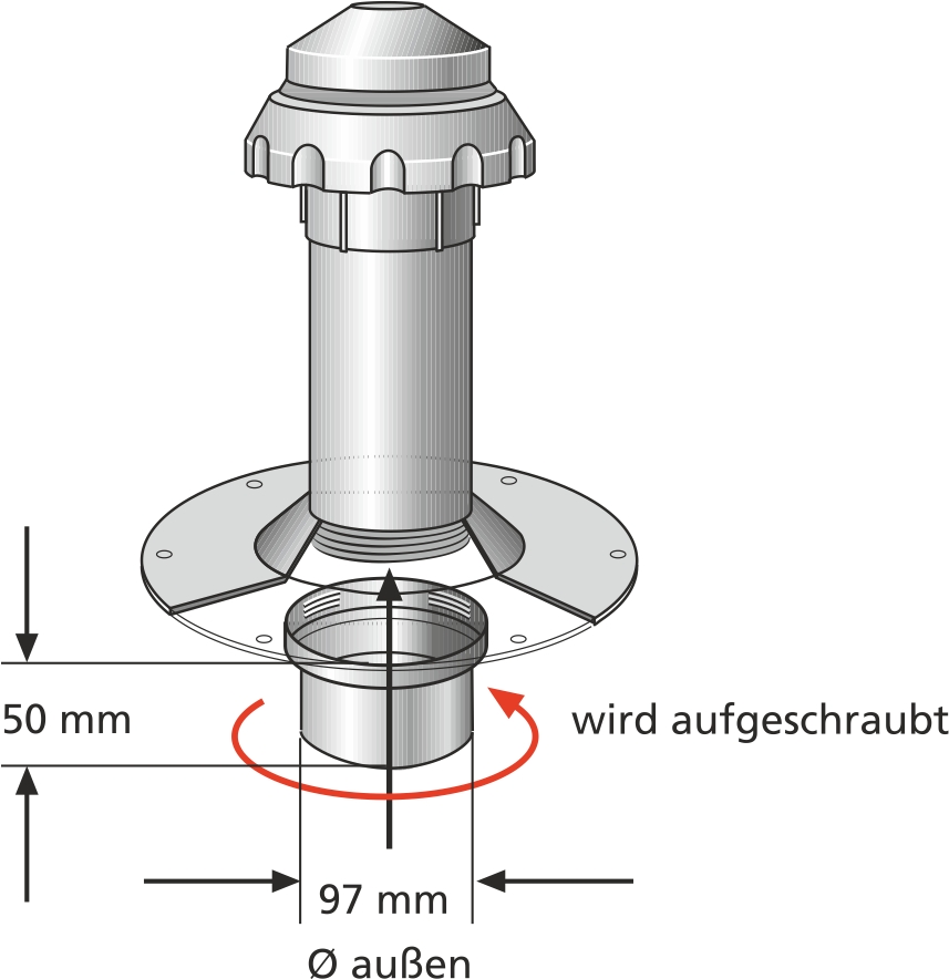 - Für den Anschluss an Anschlussrohre mit Innendurchmesser > 98 mm